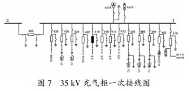 在某變電站結合新投設備初度停電檢修時對35kV充氣柜進行了例行實驗,包含交流耐壓實驗、回路電阻查驗和斷路器機械特性查驗。35 kV充氣柜一次接線圖如圖7所示。
